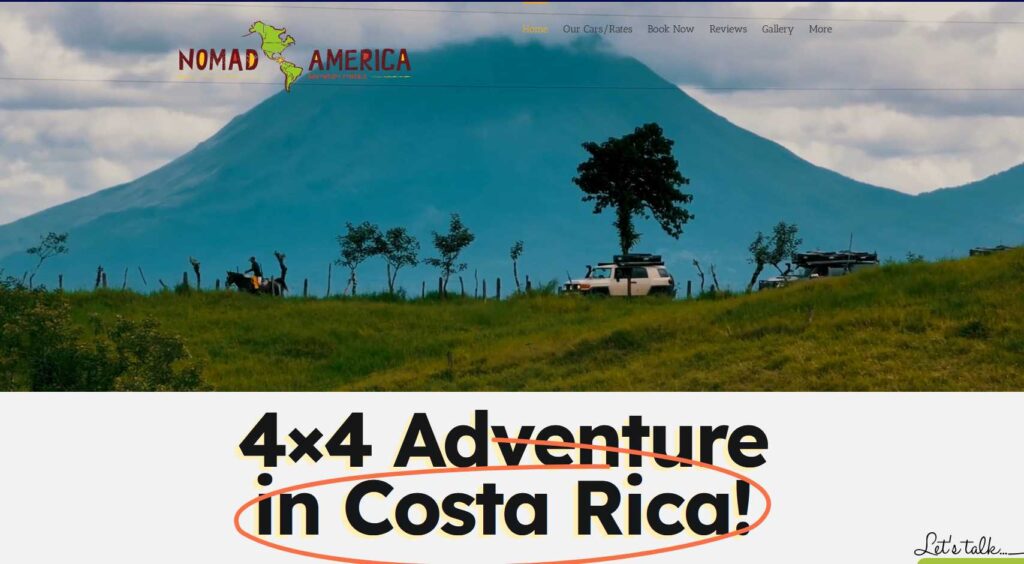 Nomad América Conversiones de autocaravanas 4×4, tiendas de campaña en el techo, kit para campo a través (vehículos pequeños → grandes) ~$90-$130+ (varía según el vehículo y la temporada) Alajuela / cerca de SJO; opciones de entrega posibles Autocaravanas independientes y parejas que quieran vehículos listos para acampar Visita